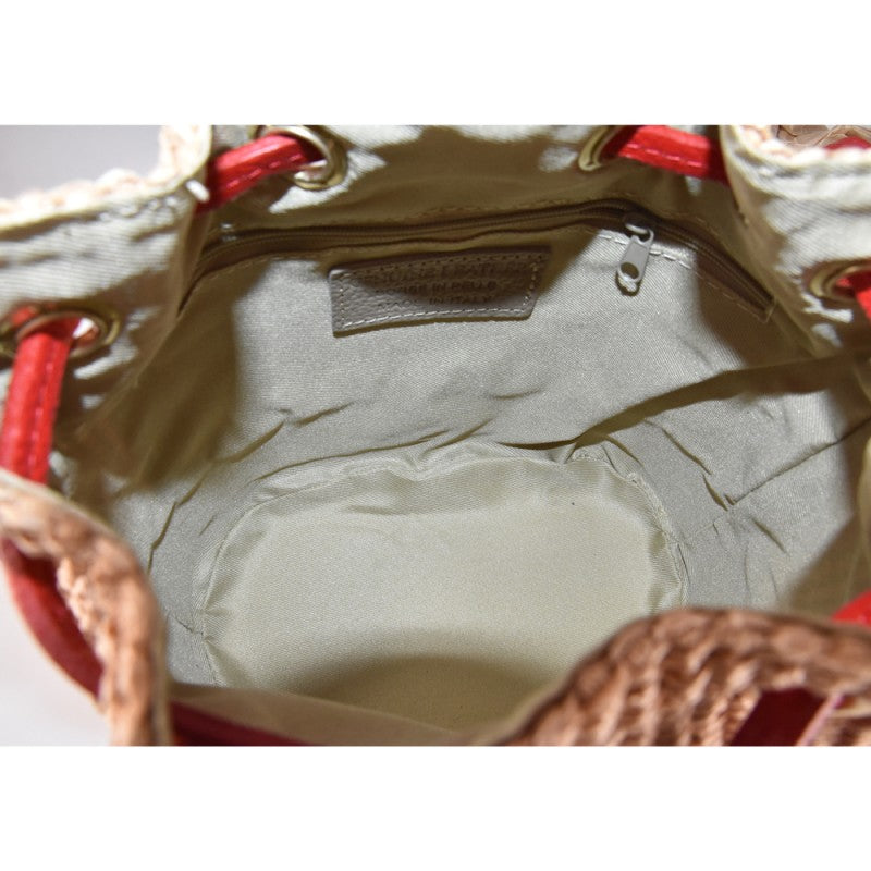 Damska torebka kubełkowa ze skóry i rafii - AG25827