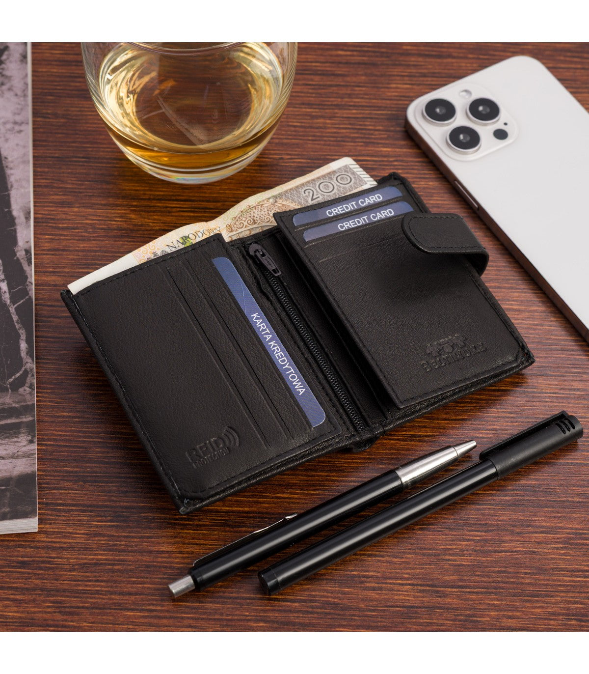 ✔ Ekskluzywny i lekki męski portfel renomowanej marki Beltimore, wykonany z najwyższej jakości naturalnej skóry.