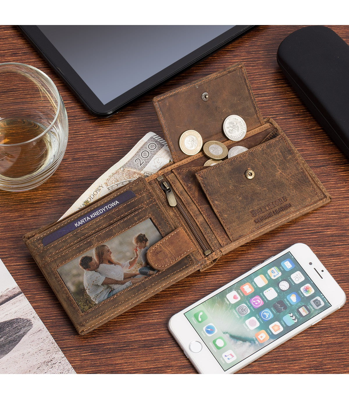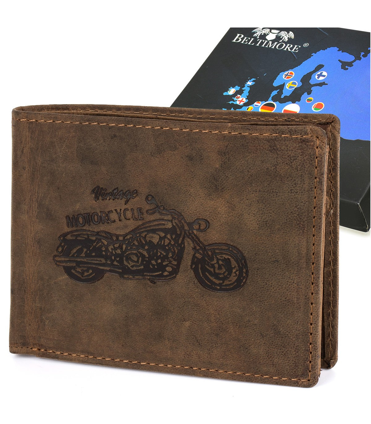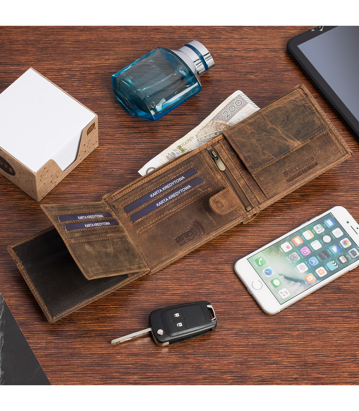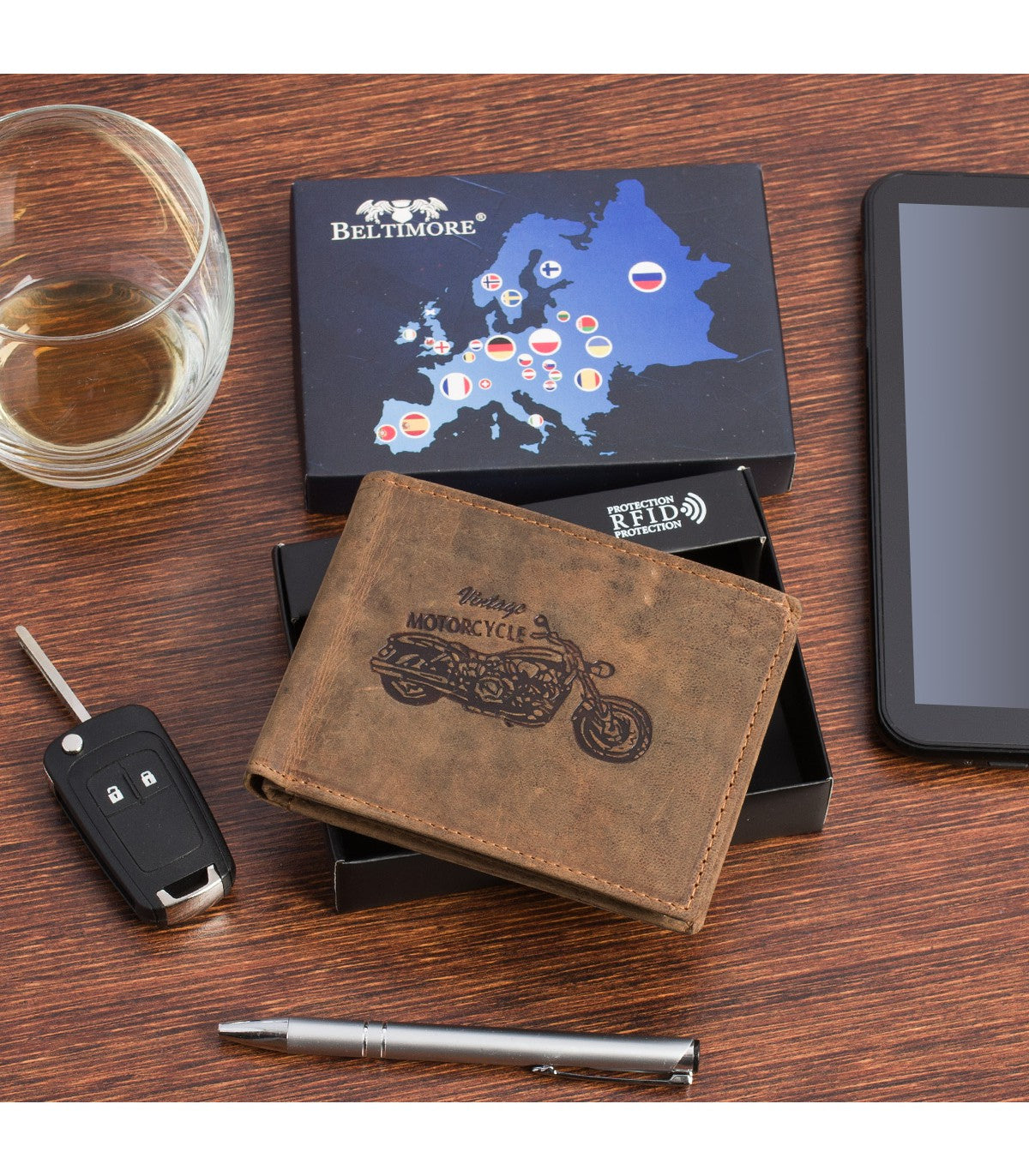 Portfel skórzany męski brązowy nubuk poziomy skóra motor RFiD Beltimore R94