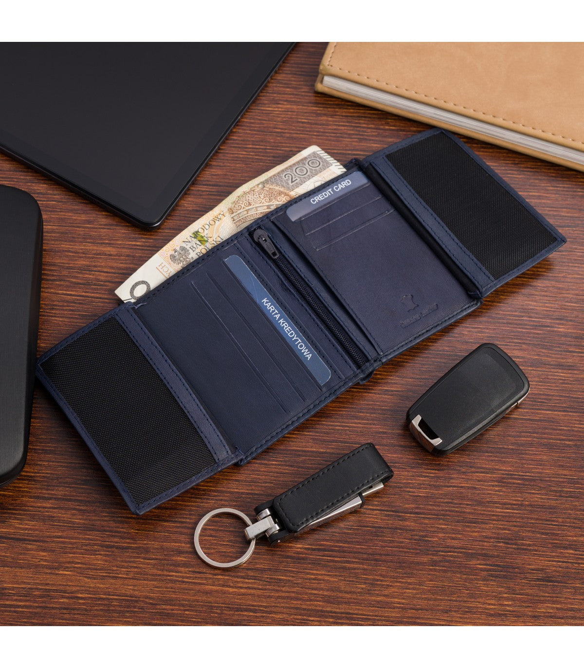 Portfel skórzany mały męski wykonany jest z naturalnej skóry, renomowanej marki Beltimore - w tej ofercie dostępna jest limitowana edycja portfela w granatowym i czarnym kolorze.