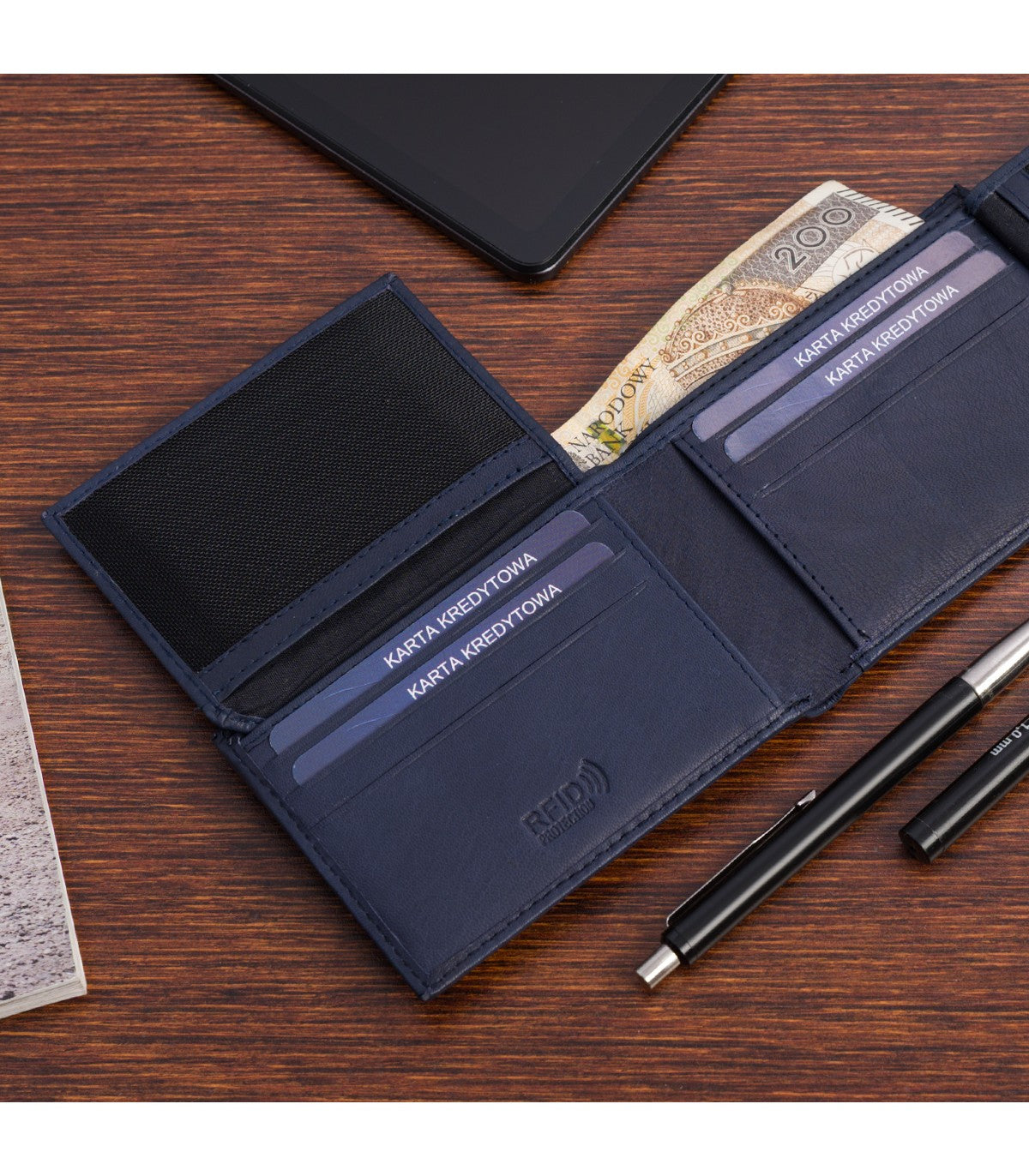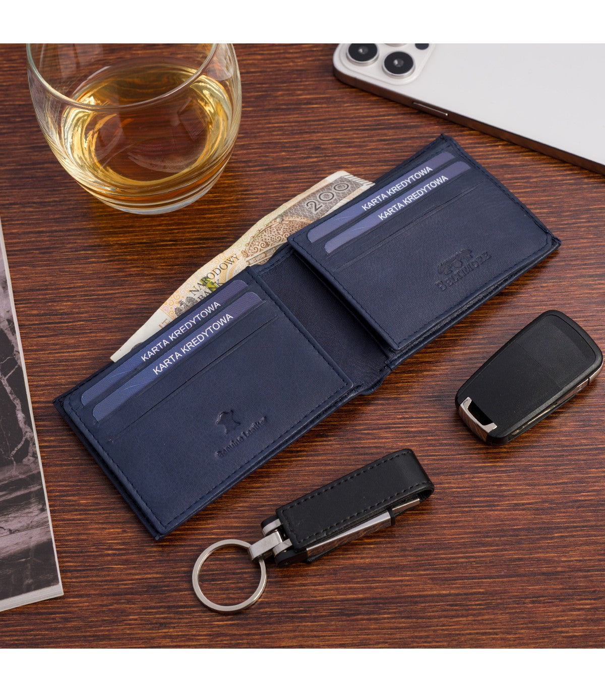Portfel skórzany męski mały poziomy z flagą granatowy RFiD Beltimore D54