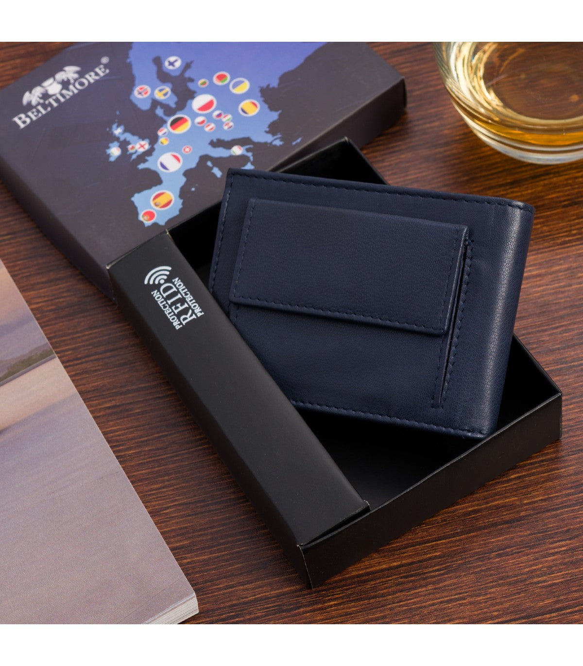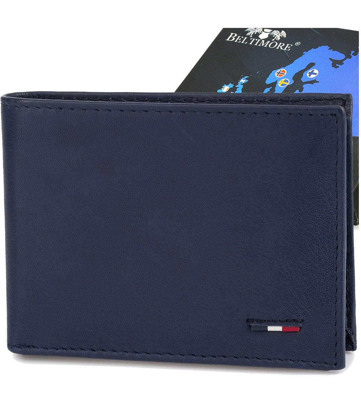 Portfel skórzany męski mały męski wykonany jest z naturalnej skóry, renomowanej marki Beltimore - w tej ofercie dostępna jest limitowana edycja portfela w granatowym kolorze.