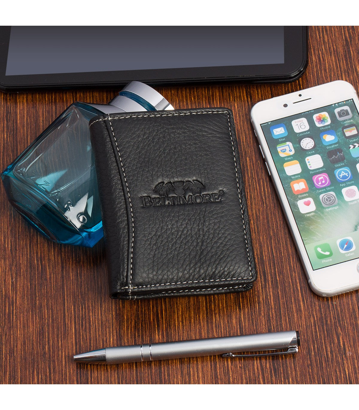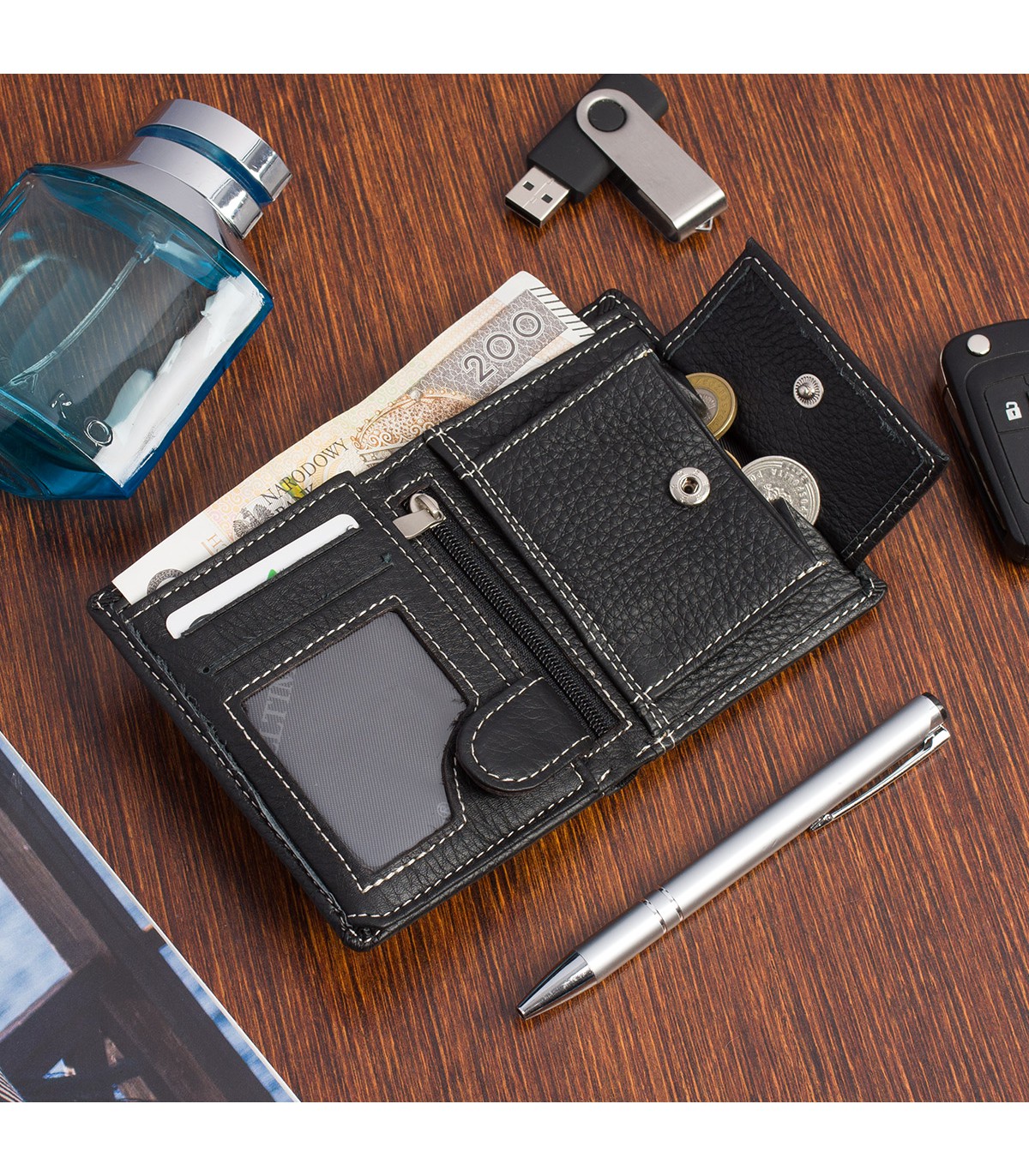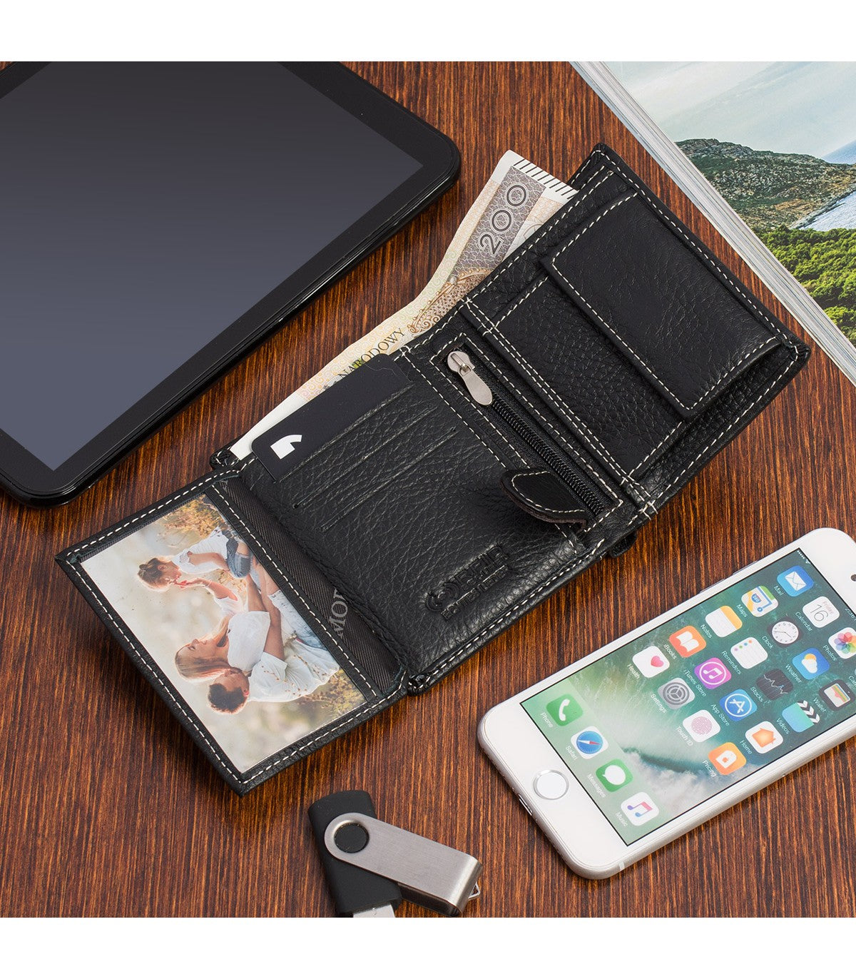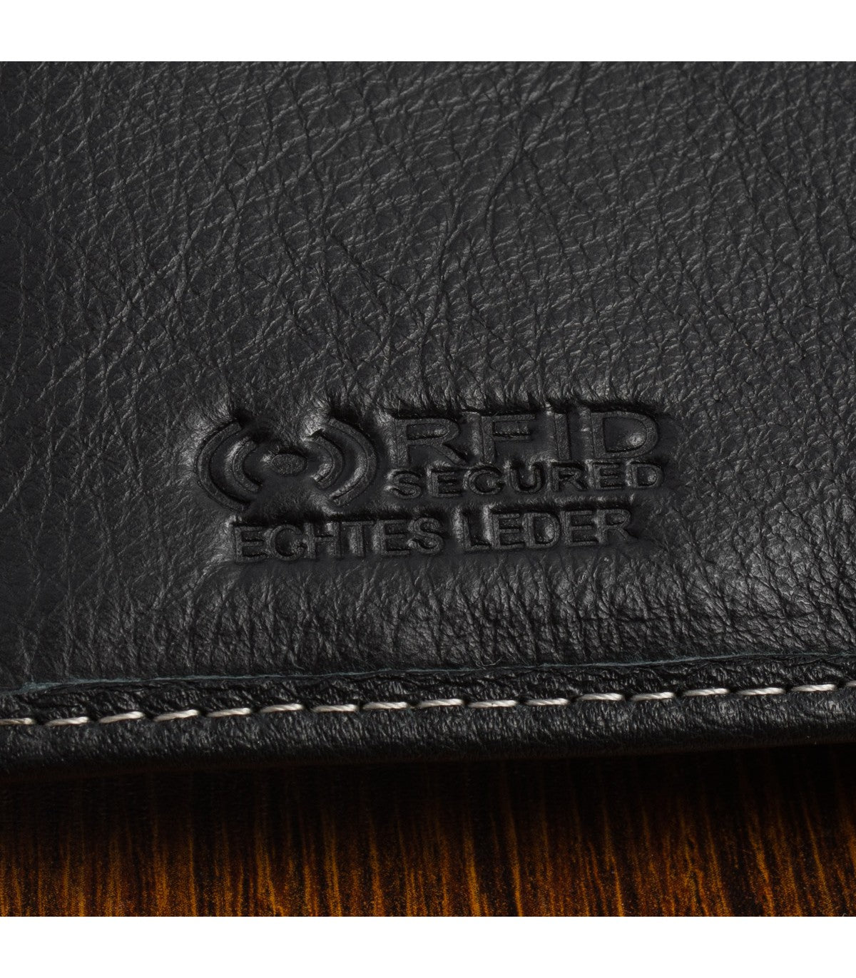 Elegancki męski portfel wykonany z wysokiej jakości skóry naturalnej vintage w czarnym kolorze, marki Beltimore z dodatkowym zabezpieczeniem RFiD.