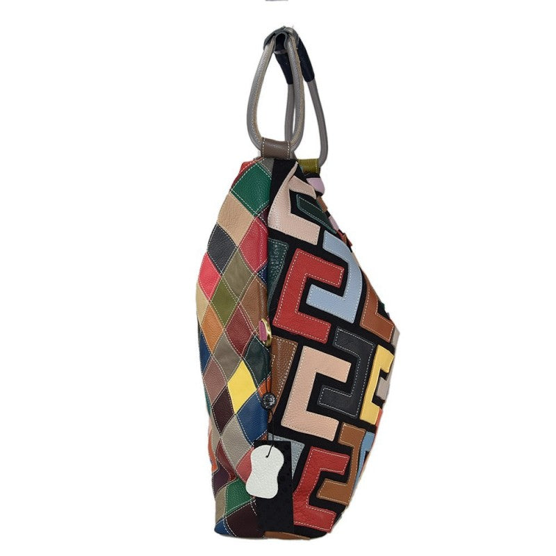 Skórzana torba na ramię z łatkami – patchworkowy rysik